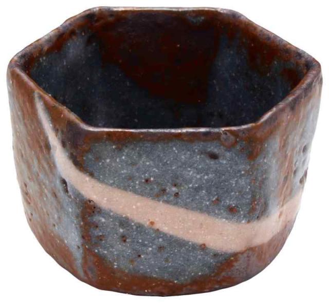 美濃焼 林亮次 ぐい呑み おちょこ 志野 (直径5.3cm, 04.六角ぐい呑 (鼠志野))