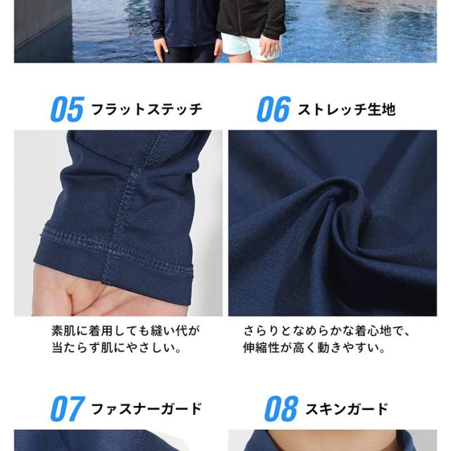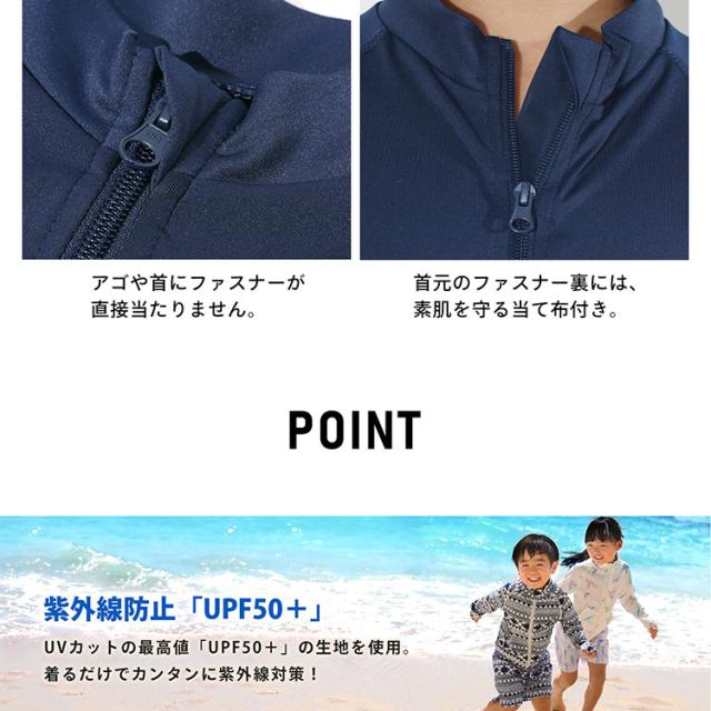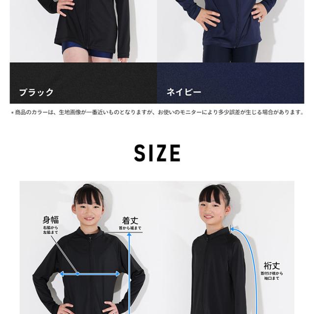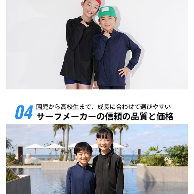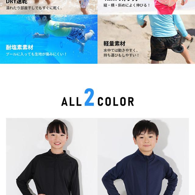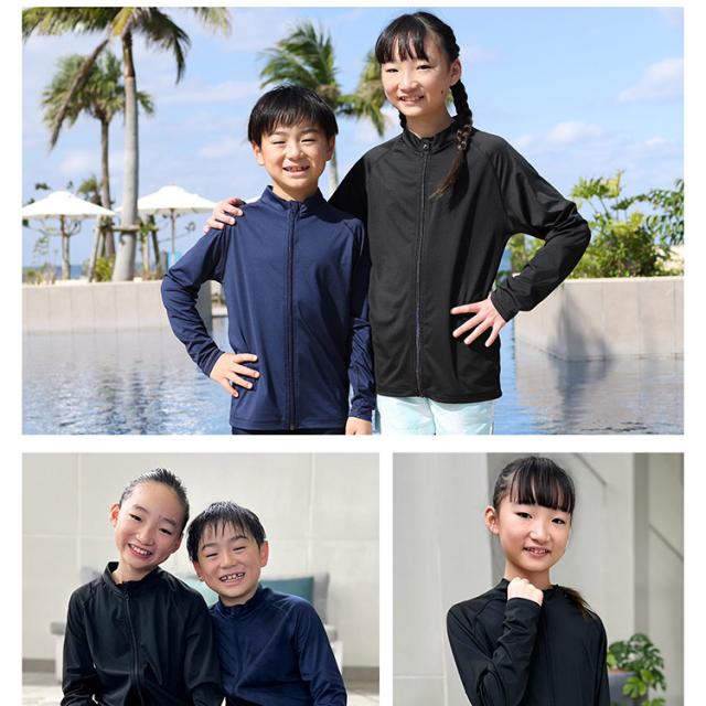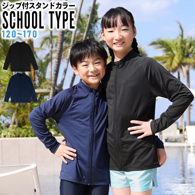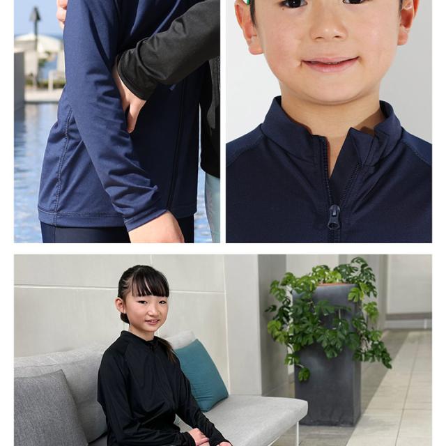キッズ/ジュニア スクール用 ラッシュガード ジップアップタイプ スタンド衿