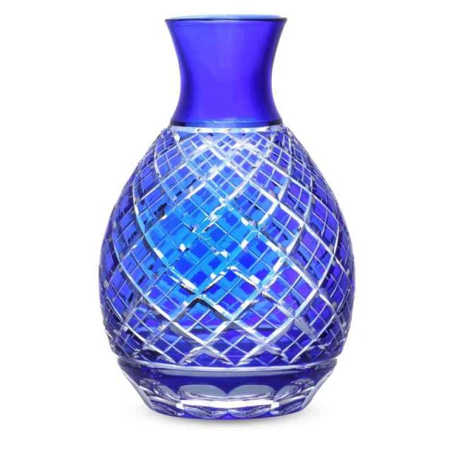 J-kitchens 切子 日本酒 徳利 Φ38xH125mm 280cc 菱紋 ブルー