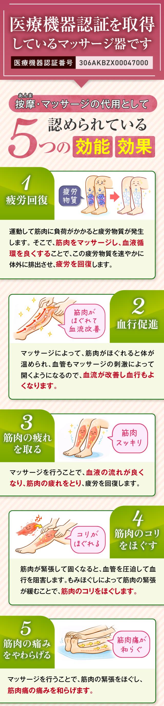 | 使用目的又は効果 | あんま、マッサージの代用。一般家庭で使用すること。 |