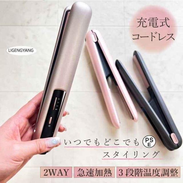 ミニ コードレス ストレート アイロン カール USB 軽量 コンパクト 収納 2way 前髪 コテ 携帯用 旅行 持ち運び