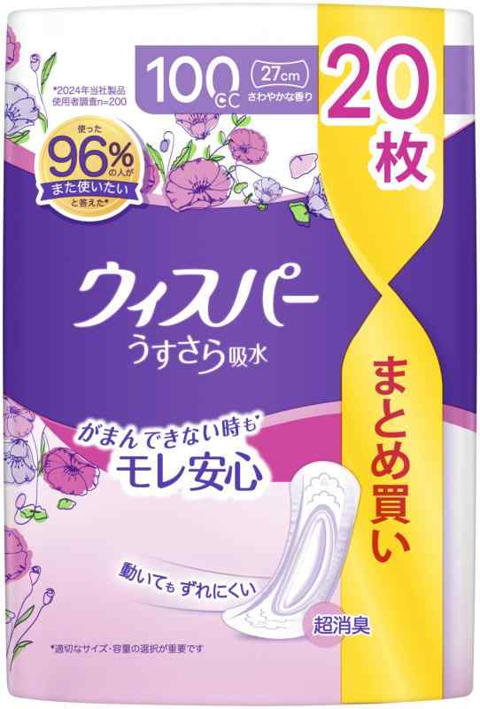 ウィスパー うすさら吸水 100cc 20枚 (尿漏れパッド 尿とりパッド 女性用) 【中量用】