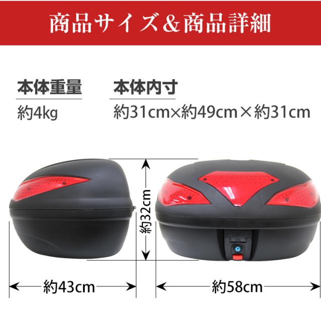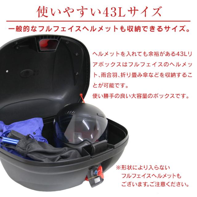 バイク リアボックス 43L トップケース バイクボックス バイク用ボックス 着脱可能式 43リットル 大容量 原付 スクーター フルフェイス収納可能 ヘルメット入れ 送料無料