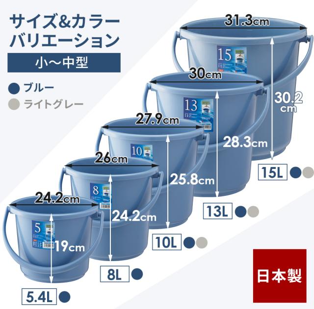 バケツ 本体 15L ライトグレー 15SB | 掃除バケツ ポリバケツ 食品衛生法適合 園芸 ガーデニング 洗車 水槽の水換え 洗濯 つけ置き 拭き掃除 丈夫 普通の 昔ながらの 日本製 ベルク