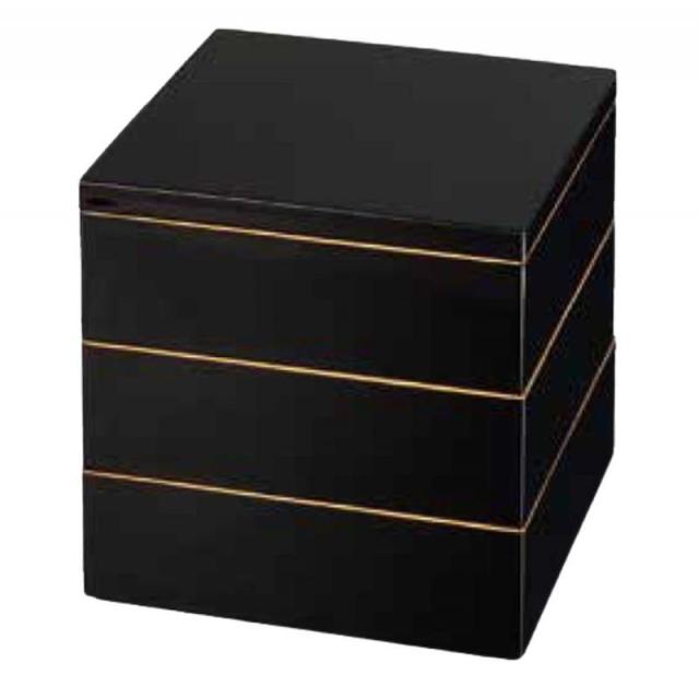 J-kitchens 重箱 3段 6寸 七福 お重箱 黒 18.2cm x 18.2cm x 15.7cm 日本製