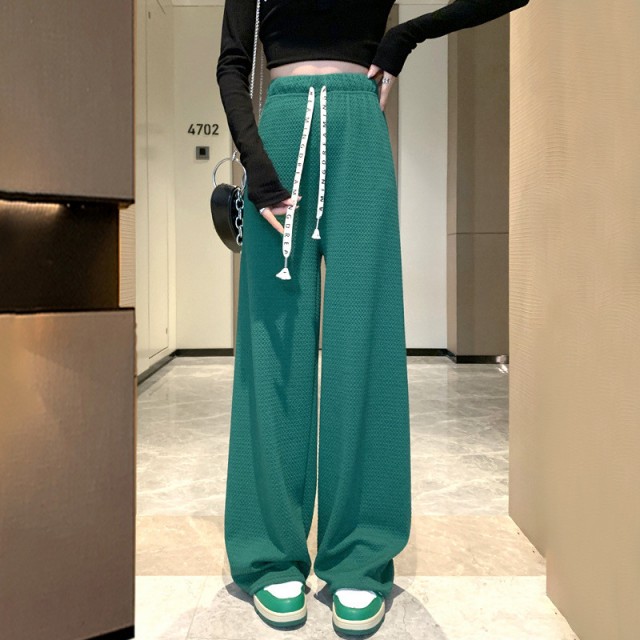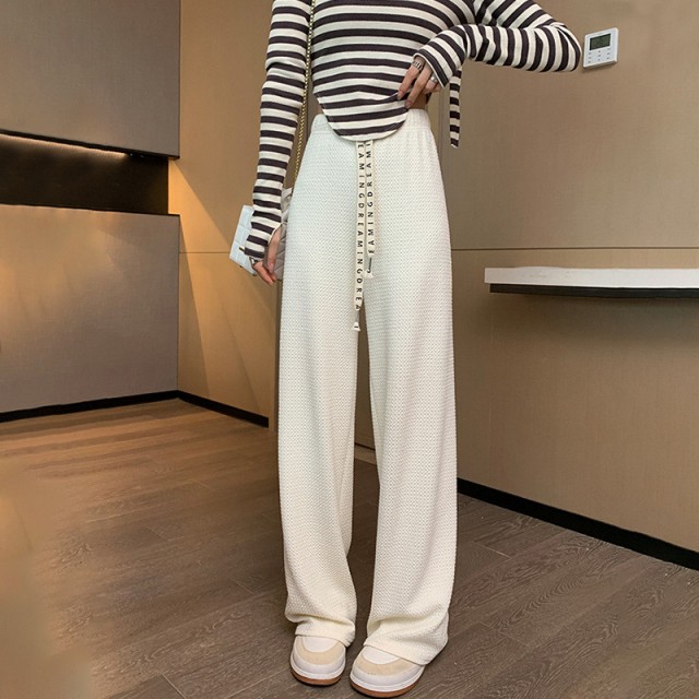 ワイドパンツ レディース パンツ ロングパンツ ワイド スウェットパンツ エンボス加工 ウエストゴム ひんやり 春 春物 夏 体型カバー