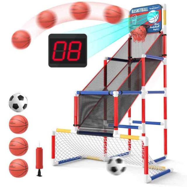 EagleStone バスケットゴール サッカーゴール 屋外 室内 おもちゃ 子供用 2in1ゴールセット バスケットボール3個 サッカー1個付き 自動採点 歓声 組立式 ストレス解消 小学生 男の子 バスケットボールネット家庭用 トレーニング クリスマス プレゼント 新年 ハロウィン ギフト 子供 ES36