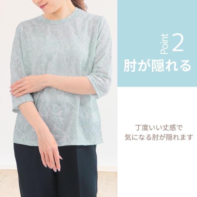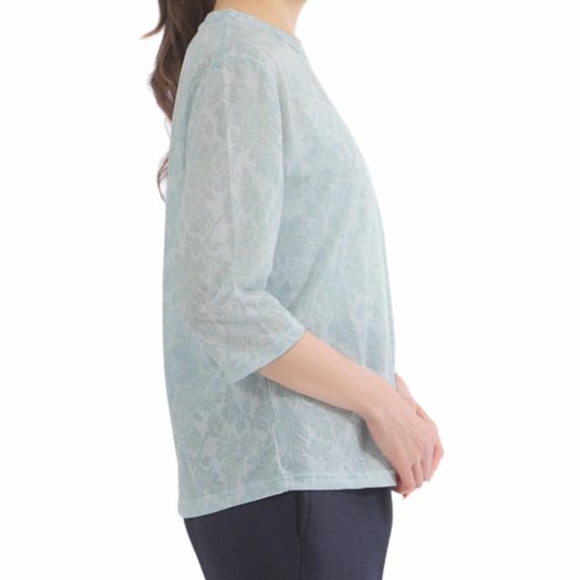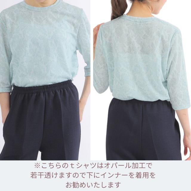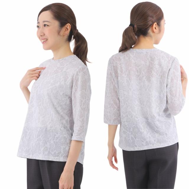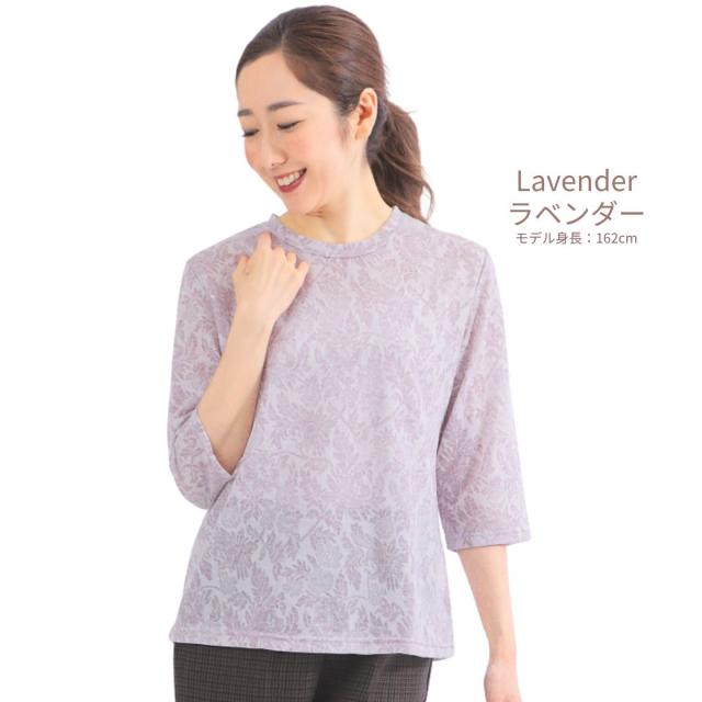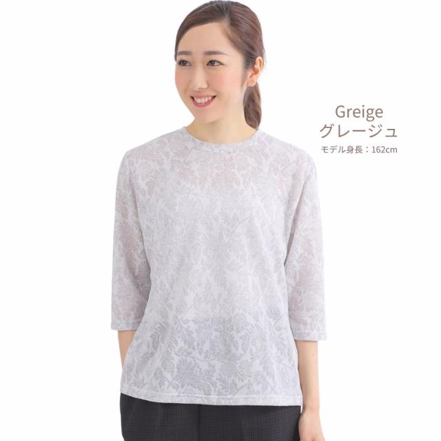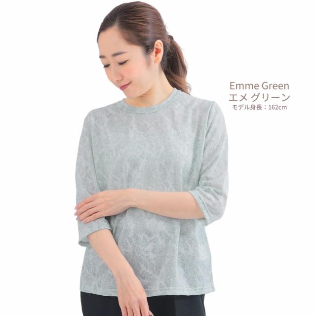 【カラー】 ラベンダー エメグリーン グレージュ【号数(女性)】 11号【シーズン】 夏 春【テイスト(ファッション)】 カジュアル クラシカル【サイズ】 フリーサイズ(M-L)【長さ(袖)】 五分袖【着丈(トップス・コート・ジャケット)】 ミドル丈【スタイル(ネック)】 クルーネック【洗濯表示】 家庭洗濯【柄】 花・植物【素材】 ポリエステル53%再生繊維(セルロース)47%オパール加工でちょうどいい透け感があります。高級感溢れる素材【商品説明】日本製で綺麗で伸縮性抜群 5分袖tシャツ夏におすすめ 柔らかく着心地も抜群で、涼しい。再生繊維でエコで環境に優しい素材を使っております。5分袖で丁度肘も隠れていい丈感。カラーは優しい色合い3色からお選び出来ます。
