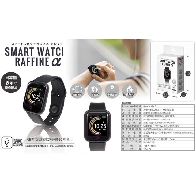 スマートウォッチ ラフィネアルファ 時計 腕時計 歩数計 歩行距離 消費カロリー 着信通知