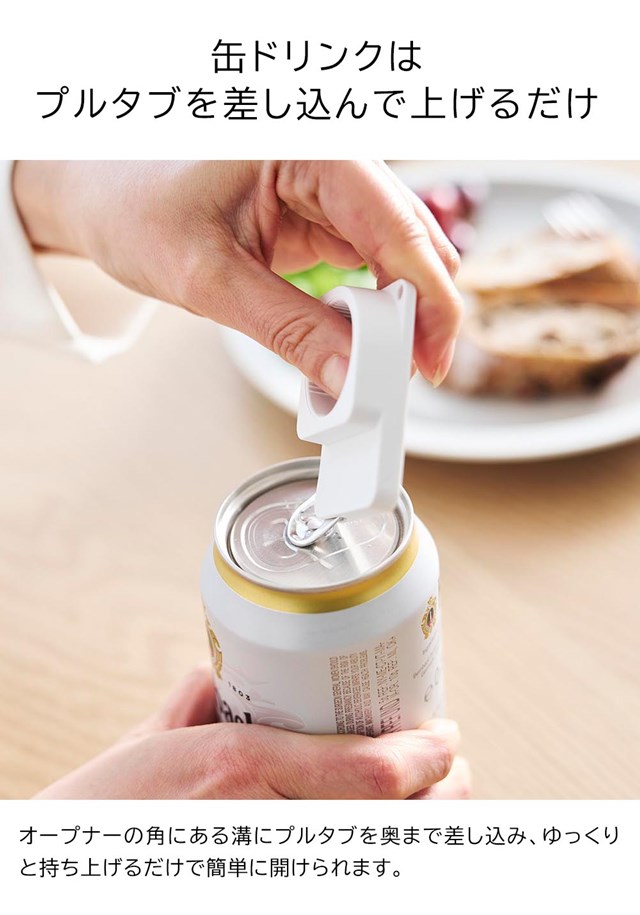 差し込んで回すだけで、簡単に開けることができるキャップ・プルタブオープナーです。