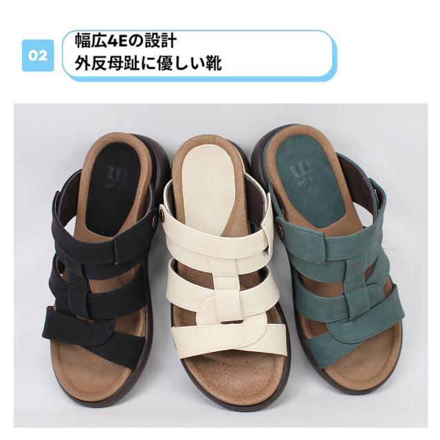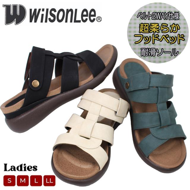 サンダル レディース ブラック ブルー ホワイト 5735 幅広4E コンフォートサンダル ミュール バックストラップ 2Ways シューズ カジュアル おしゃれ ウイルソンリー Wilson Lee
