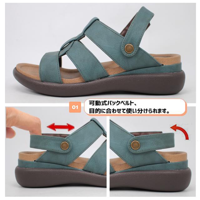 “足にやさしく(SOFT&FIT)”をコンセプトに、快適性を追求するシューズブランドです。アンティーク調に仕上げた素材にコロンとしたソールが大人可愛いぺたんこサンダルです。移動式の甲ストラップは前にずらせば多重ベルトの楽ちんミュールに、後ろに移動させればネックストラップとしても使える2waysデザインです。ストラップの付け根はゴムになっており伸縮性があるので脱ぎ履きしやすく足にしっかりフィットします。屈曲性抜群の反りの良いアウトソールで歩行がとても滑らかに。4Eの幅広設計でゆったりとした履き心地をお届けするコンフォートサンダルです。