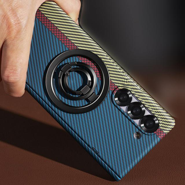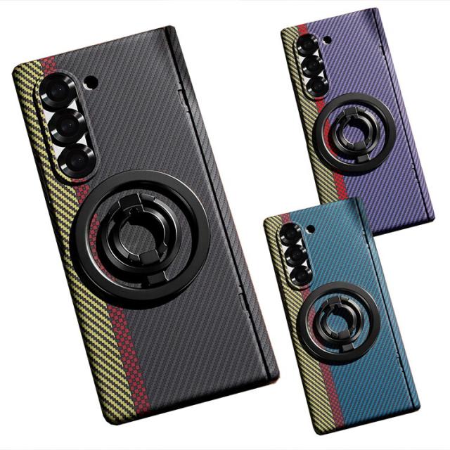 Galaxy Z Fold7 ケース カバー 折りたたみ型 分離型リング付き マグネット式スマホリング Qi充電 対応 前面強化ガラス スタンド機能 カーボン調 PUレザー 背面ケース シンプル 可愛い お洒落 Samsung サムスン ギャラクシー Z フォールド7 保護ケース アンドロイド おすすめ