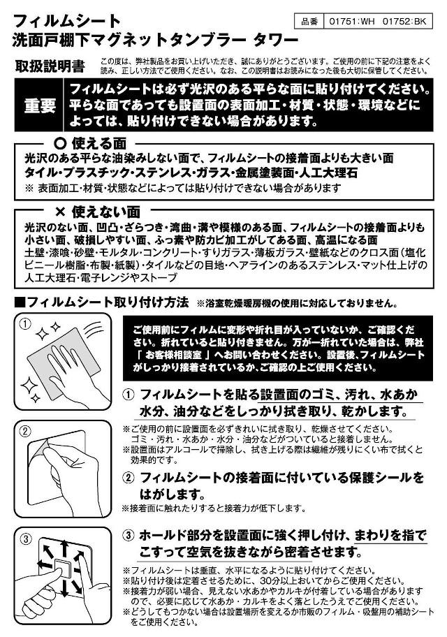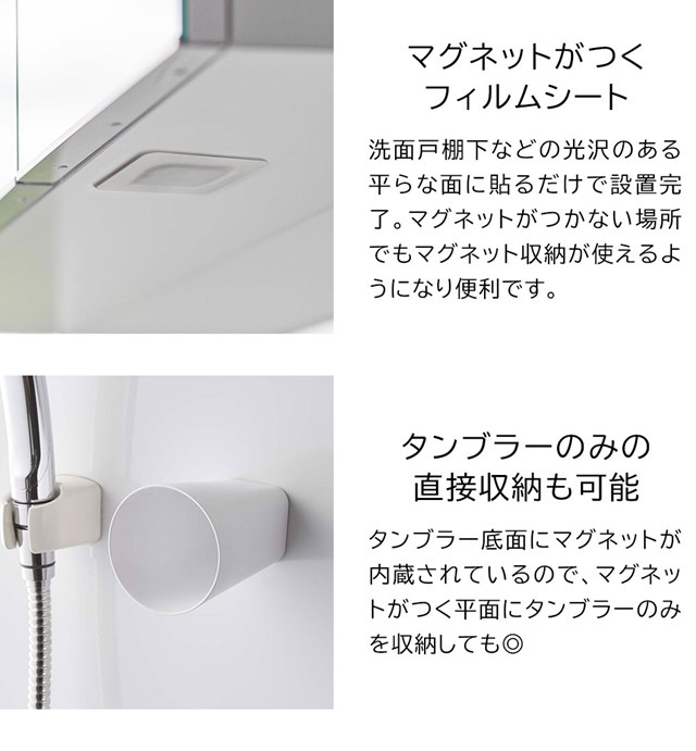 【tower】フィルムシート洗面戸棚下マグネットタンブラー 1751 1752 ホワイト ブラック【山崎実業 タワー フィルムシート タンブラー コップ マグネットタンブラー お風呂 洗面所 スッキリ 収納道具 yamazaki】