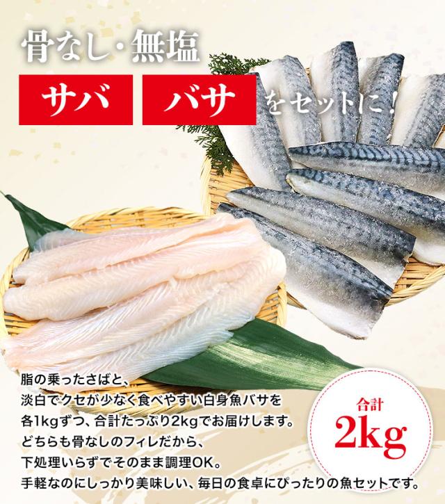 サバ と バサ 骨なし 無塩 セット 1kg×2 合計2kg サバ 鯖 パンガシウス ばさ さば 骨取り 無塩