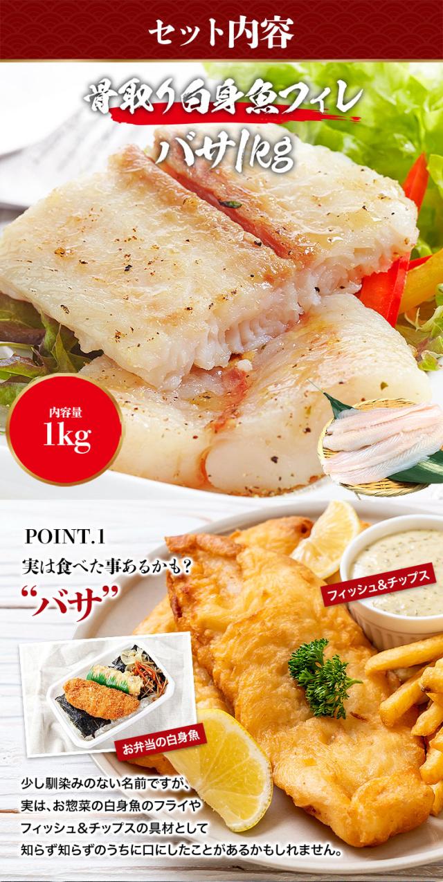 淡白でクセが少なく食べやすい白身魚バサを各1kgずつ、