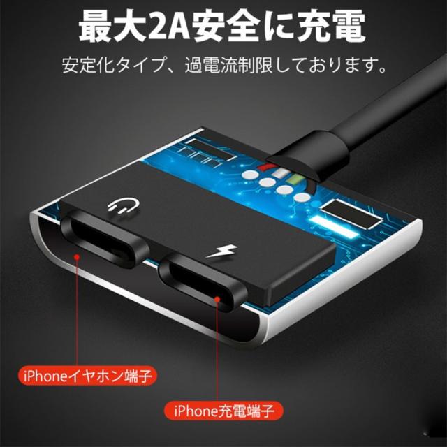 充電 同時音楽再生 2in1ケーブル 変換アダプタ 【対応iPhone7/8/XS/各種】 変換ケーブル イヤホン 充電しながら イヤホン変換ケーブル iPhoneイヤホン 充電器iphoneケーブル USB to Lightning