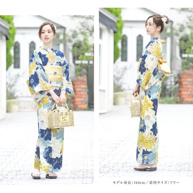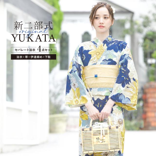 浴衣 セット レディース 二部式 セパレート 浴衣セット 半幅帯 2025 簡単 悩まない 涼しい 吸水速乾 青 黄色 クリーム ガーベラ 花柄 大人 おしゃれ 可愛い 下駄 フリー 送料無料