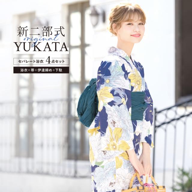浴衣 セット レディース 二部式 セパレート 浴衣セット 兵児帯 2025 簡単 悩まない 涼しい 吸水速乾 白 青 黄色 青緑 ガーベラ 花柄 大人 おしゃれ 可愛い 下駄 フリー 送料無料