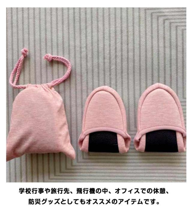 | 【様々なシーンでマルチに活躍してくれる携帯用スリッパ】 スリッパを半分に折りたたみ、付属のポーチ・巾着に収納可能となっており、荷物もかさばらずコンパクトなサイズ感に〇 学校行事や旅行先、飛行機の中、オフィスでの休憩、防災グッズとしてもオススメのアイテムです。 【きちんと感のあるデザイン】 きちんと感のあるデザインながら、柔らかな履き心地。 履き口周りはゴム仕様でフィット感が◎かかとがパカパカの心配もありません。 【便利な巾着ポーチ付き】 スリッパは二つ折りにして付属の巾着ポーチにサッと収納! とってもコンパクトに持ち運びができます。 【手入れのしやすい底面】 底面は汚れが気にならない合成皮革。 水気や汚れもサッと拭きとりやすい! | |