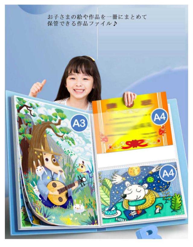 | ・お子さまの絵や作品を一冊にまとめて保管できる作品ファイル♪ ・保育園や幼稚園の3年間・小学校6年間の思い出を学年ごとに収納できるので、将来の大切な宝物になること間違いなし♪ | |