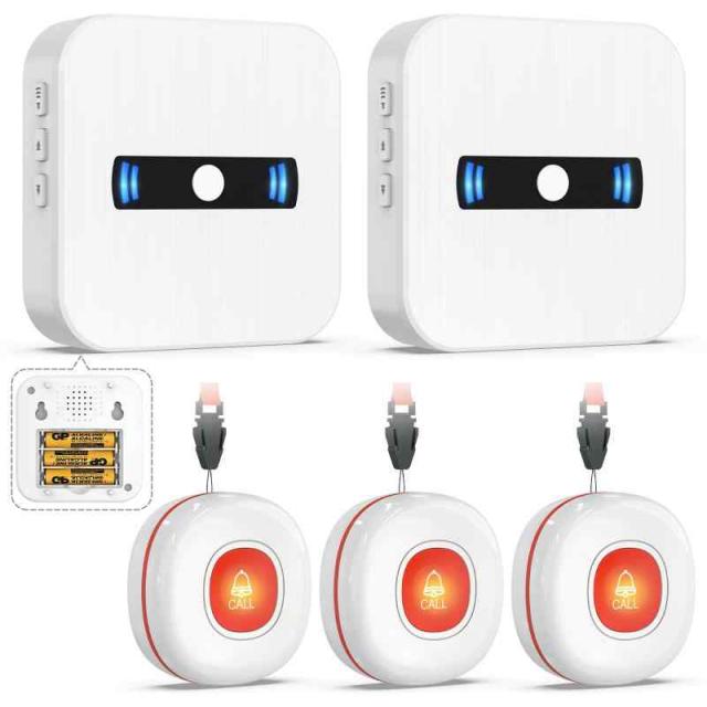 DAYTECH 呼び出しベル 介護 高齢者用 ナースコール 家庭用 ワイヤレスコールボタン 緊急ボタン 高齢者 介護用ブザー sos アラーム 無線 電池式 防水 呼び出しチャイム 呼び出し装置 3発送信機+2受信機 家庭/病院/老人ホーム対応