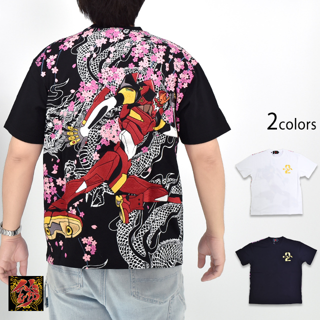 EVANGELION×錦 桜龍2号機半袖Tシャツ 錦 585351 和柄 和風 刺繍 新世紀 エヴァンゲリオン