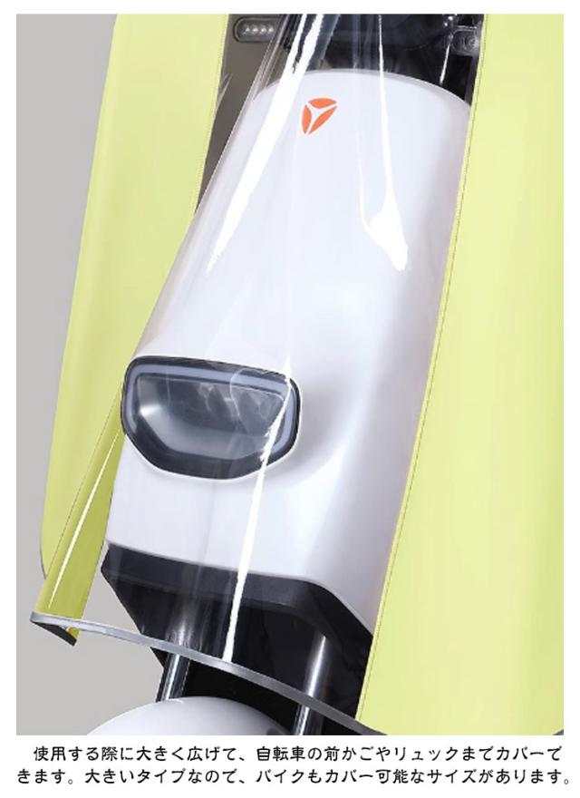 | ヘルメットを着用可能!雨天時、自転車に乗る際に役立つ大きいつば付きの「自転車用レインコート」。 袖がないタイプなので、雨の侵入を防ぐだけでなく思わぬ事故の防止に役立ちます。 使用する際に大きく広げて、自転車の前かごやリュックまでカバーできます。大きいタイプなので、バイクもカバー可能なサイズがあります。 上質な素材を採用し、透湿性に優れ、汗や蒸気を効率よく外部に排出することが可能。また、拭くだけ乾くことができるので、お手入れも簡単! | |