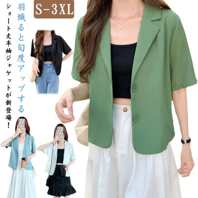 | 羽織ると旬度アップするショート丈半袖ジャケットが新登場! S-3XL 洗練されたこだわりシルエット、ショートな丈感は前を閉じてもスタイルアップ。 オーバーサイズになりすぎず、程よいサイジングで、シャツのように気軽に着用。 デニム×Tシャツにさっと羽織ってカジュアルスタイルに、キャミやワンピに合わせてきれいめにも◎ ファッションのお好きな方にもぜひおすすめしたいアイテム。 | |