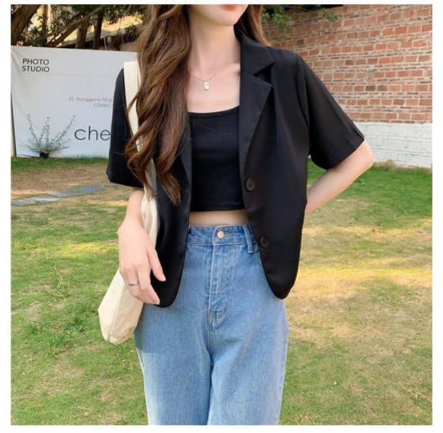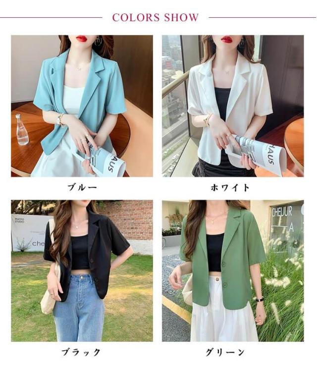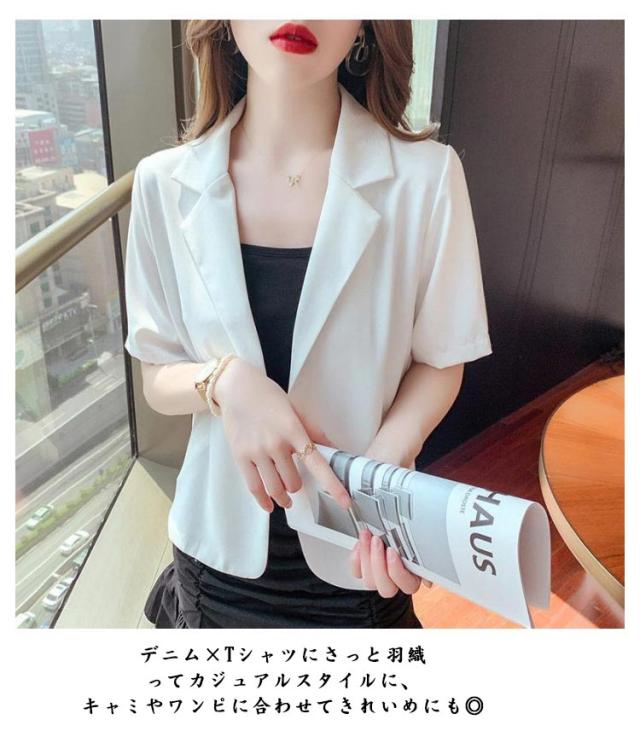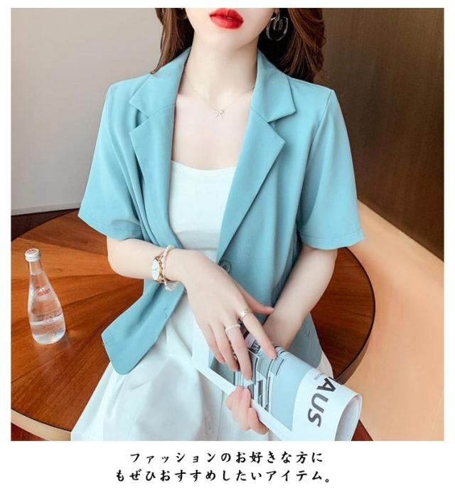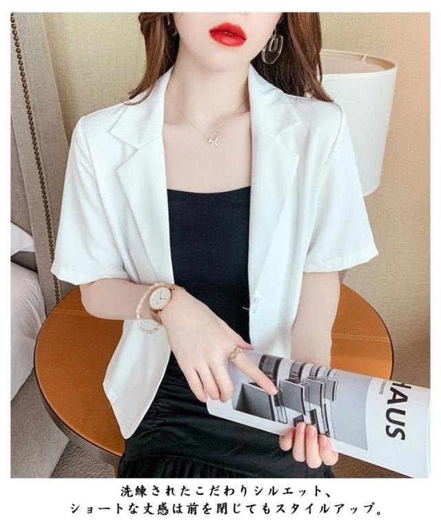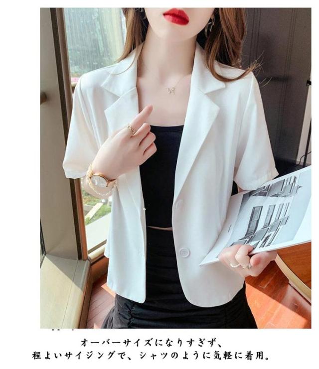 レディース 薄手 ジャケット サマージャケット テーラードジャケット ジャケット コットン ショート丈 綿 春夏 ボタン 前開き クロップド丈 アウター スーツ サマースーツ カジュアルスーツ 通勤 オフィス カジュアル