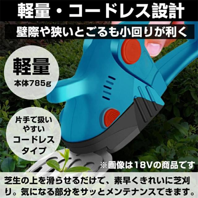 とこでも手軽に使える軽量&コードレス芝生バリカンです。本体のみ約1KG、長時間の使用でも疲れにくく、女性や初心者でも簡単に庭木の剪定ができます。芝 バリカンは生け垣、芝生、低木などの剪定に使用でき、園芸作業の理想的な選択である。