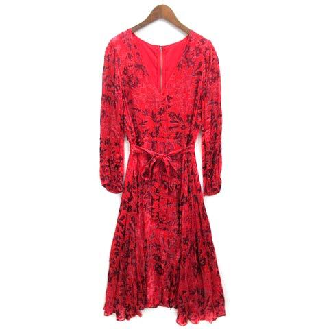 【中古】アリスオリビア alice + olivia フラワー ワンピース ロング レーヨン シルク 長袖 レッド 赤 レディース