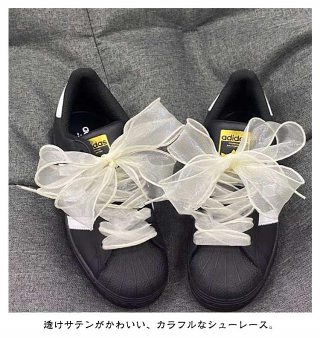 幅広 靴ひも かわいい スニーカー シューアクセ 無地 靴アクセサリー 靴ケア用品 リボン ファッション小物 単色 シューレース ふんわり ボリューム感 透け感 おしゃれ アレンジ 左右セット!靴紐