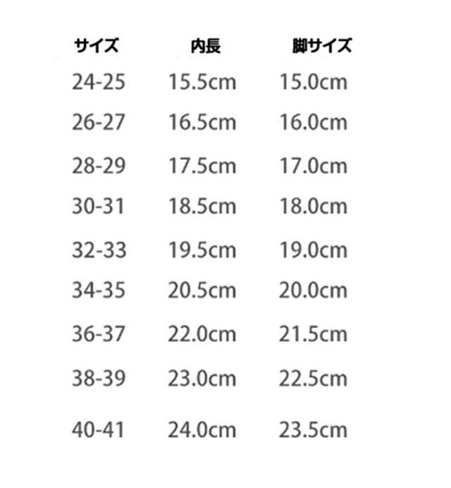 | サイズ | 24-25 26-27 28-29 30-31 32-33 34-35 36-37 38-39 |
