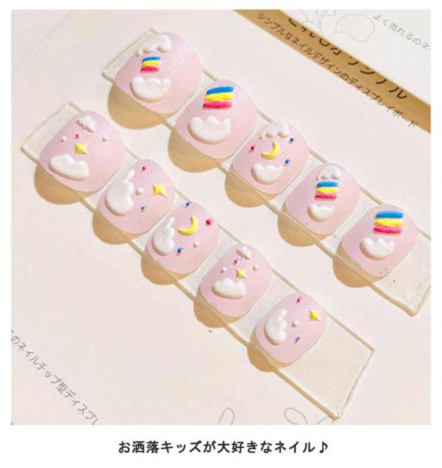 | 12枚入り粘着テープ式子供用ネイルチップ♪ お洒落キッズが大好きなネイル♪ 貼るだけでネイルが完成! クリスマスギフトにも最適です。 使い方法:1.爪表面の油脂を除去します。 2.爪のサイズに合わせてシールを選びます。 3.シールを爪の根本から爪の先 に向けて全体に貼り付けます。 4.爪の余分なシールを爪やすりで整えます。 | |