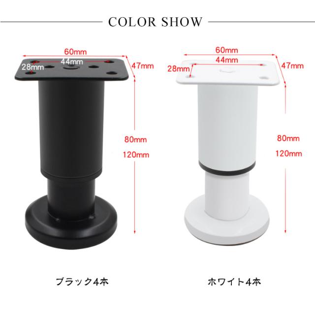| 段差があっても設置可能の高さ調節自在の継ぎ脚。 継脚は一本ずつ高さの調整ができるので段差が生じる場所にも簡単に設置できます。 高さ調節機能付きで、家具に合わせていつでも簡単に高さ変更ができます。 強力な耐荷重のステンレス製、ベッドやソファなど重い家具にも安定感抜群。 サビに強いコーティングがされているため洗面所・キッチン・浴室など場所を選ばずに設置できます。 底面がゴム素材でズレにくく、床を損傷や摩耗から保護してくれます。 ソファ、デスク、ベッド、コーヒーテーブル、テレビ台、キャビネット、冷蔵庫、洗濯機、ワードローブ、ベッド、棚、収納ラック、DIY家具などに最適な高さ調節できる継ぎ脚4本セットです。 | |