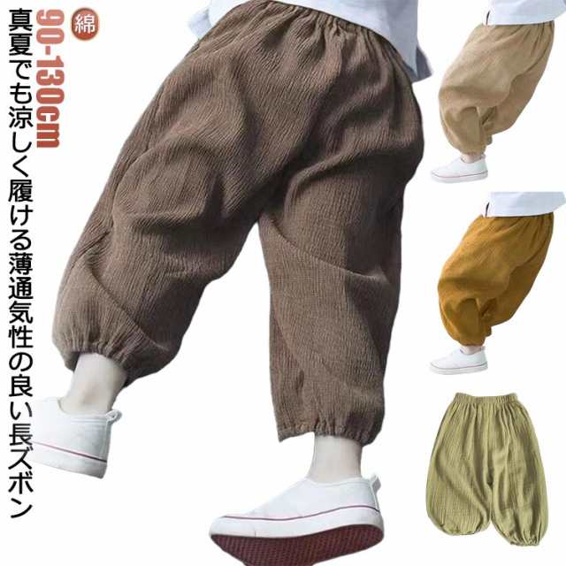 男の子 キッズ 綿 子供服 女の子 コットン バルーンパンツ ロングパンツ 子供 キッズ ガーゼ 涼しいパンツ 春 薄手 夏用 裾ゴム 虫よけパンツ 虫刺され防止 ベビー 通学 カジュアル 無地 普段着 通園 長ズボン ルームウェア 90 100 110 120