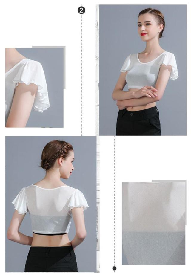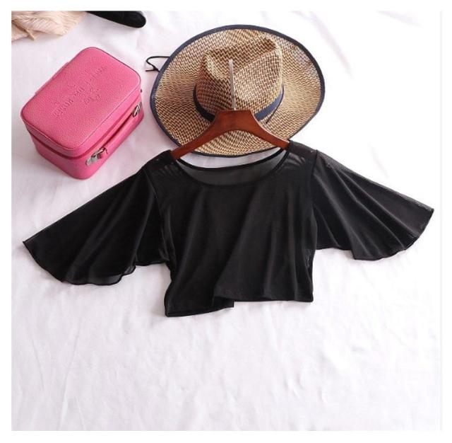 レイヤード 体型カバー レース フリル袖 夏 フリル 二の腕 着痩せ トップス ショート丈 薄手 Tシャツ 重ね着 付け袖 透け感 クルーネック シアー 半袖 二の腕カバー インナー 細見え シフォン 上品 ホワイト ブラック パーティドレス UV対策 冷房対策 春 フレアスリーブ