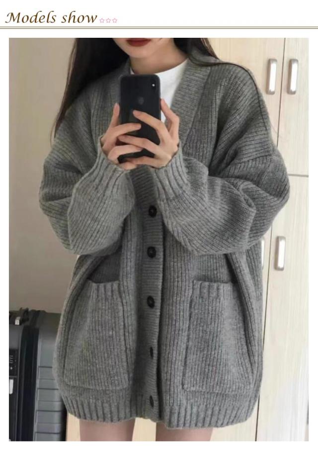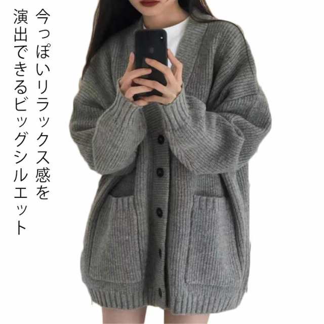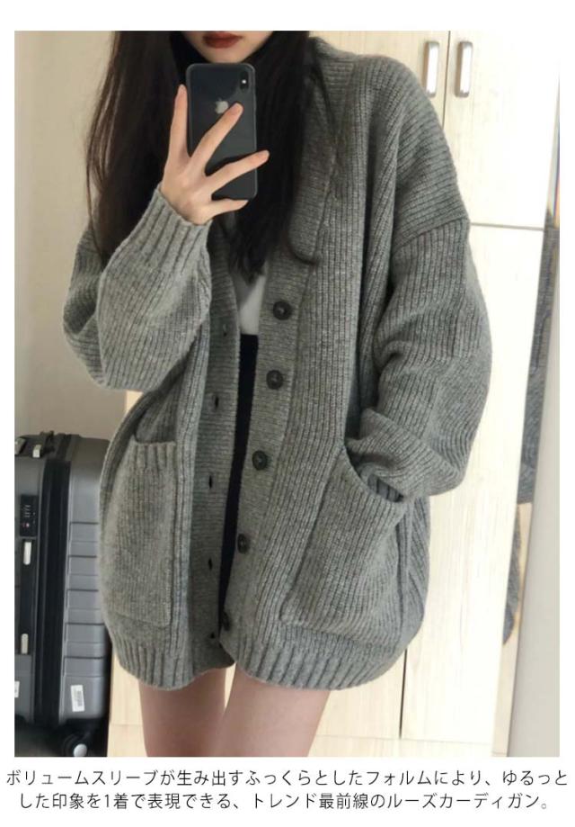 カーディガン レディース 羽織り 秋 おしゃれ ニット ボリュームスリーブ ポケット付き 厚手 オーバーサイズ ボリューム袖 冬 トップス ニットカーディガン 秋服 ニット アウター スクールカーディガン ゆったり ドロップショルダー ロング