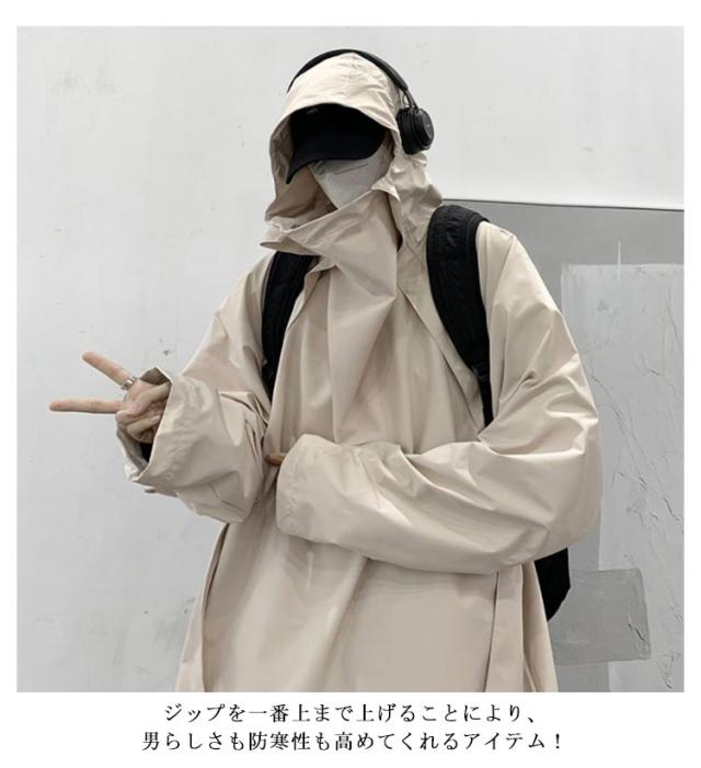 裏起毛・裏起毛なし 長袖 パーカー ボリュームネック プルオーバー 送料無料 撥水 マウンテンパーカー メンズ トップス フード付き ストリート パーカー ハイネック オーバーサイズ ビッグシルエットパーカー 大きいサイズ ゆったり カジュアル 防水 春 秋 パーカー