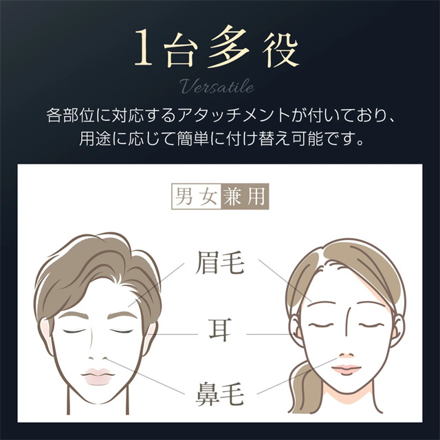 ■多機能設計・鼻毛と眉毛を一台でお手入れ 精密なカットが可能なため、鼻毛の処理も眉毛の形整えも、一本の器具で簡単に行えます。眉毛のお手入れもスムーズに行え、余分な毛を素早く取り除けます。 ■敏感肌にも優しい 刃が皮膚に直接触れないように工夫されており、敏感肌の方でも安心して使用できます。特に鼻毛の処理は、目に見えにくい場所でも簡単にカットできるため、手間を省いて素早く美しく仕上げます。 ■usb充電式・LCDディスプレイを搭載 電池交換の手間がありません。毎回の使用後に充電するだけで、何度でも繰り返し使用できます。LCDディスプレイを搭載しており、操作が簡単で使いやすいです。ディスプレイでバッテリー残量や操作モードが一目でわかるため、充電のタイミングや使用状況を常に把握できます。 ■水洗ok・お手入れ簡単 取り外して水洗いできるため、清潔に保ちやすく、衛生的に使用できます。水洗いをすることで、毛の詰まりを防ぎ、長期間快適に使い続けることが可能です。また、軽量でコンパクトなデザインのため、収納にも便利です。 |