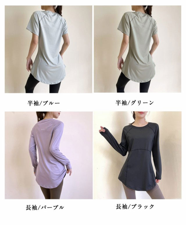 ヨガウェア トップス ロング丈 ヨガtシャツ レディース 半袖 長袖 ストレッチ ヨガトップス スポーツウェア おしゃれ ピラティス ウェア ロング 体型カバー 速乾 薄手 丈長め 伸縮性 ゆったり スリット ラウンドネック 送料無料