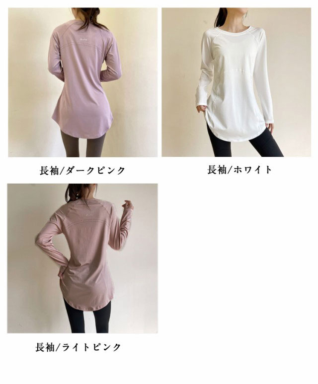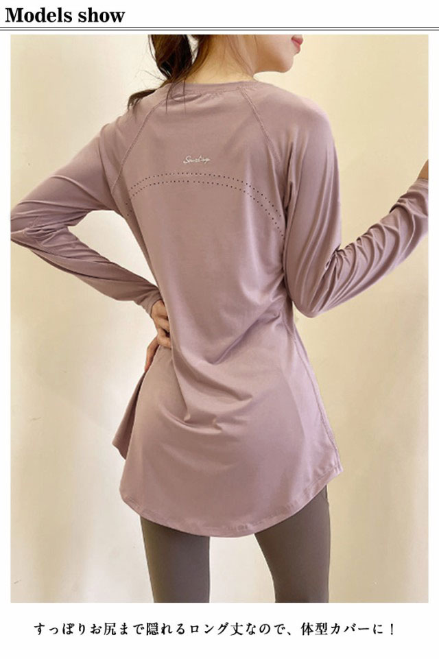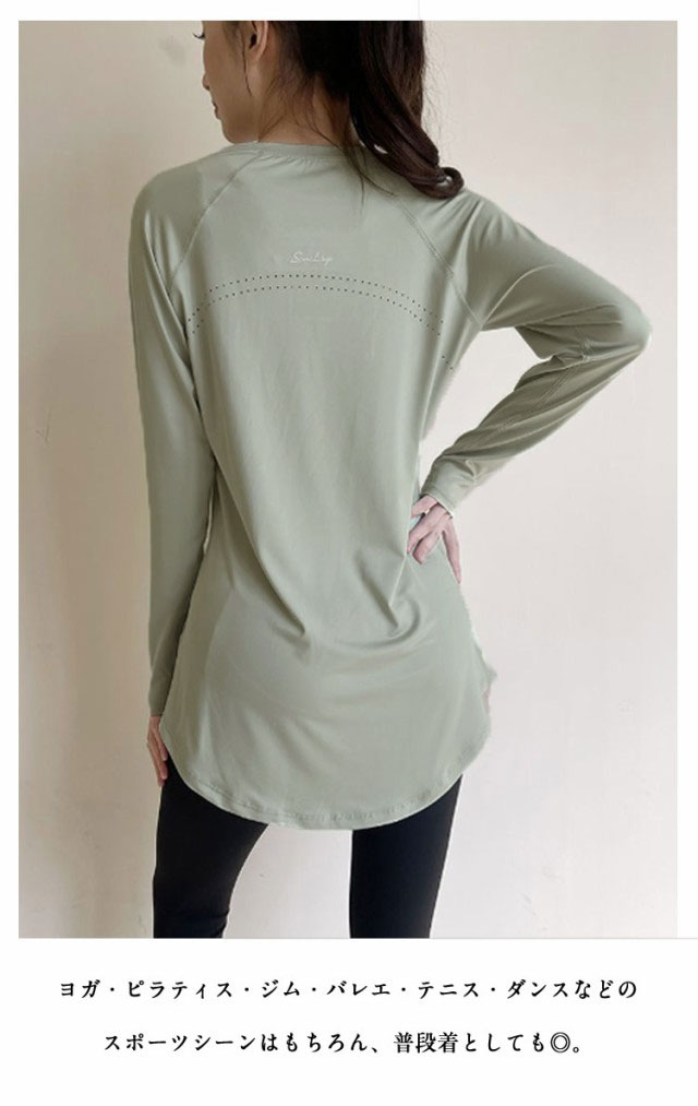 | 長い着丈が体型カバー!レディーススポーツtシャツ すっぽりお尻まで隠れるロング丈なので、体型カバーに! 裾のラウンドカットが女性らしいデザインです。 柔らかくて肌ざわりの良い生地。通気性もあり吸汗速乾性に優れているので、蒸れません。 選べる袖丈、ロングシーズンで大活躍します。 ヨガ・ピラティス・ジム・バレエ・テニス・ダンスなどのスポーツシーンはもちろん、普段着としても◎。機能性に優れたトップスでフィットネスをお楽しみください♪ | |