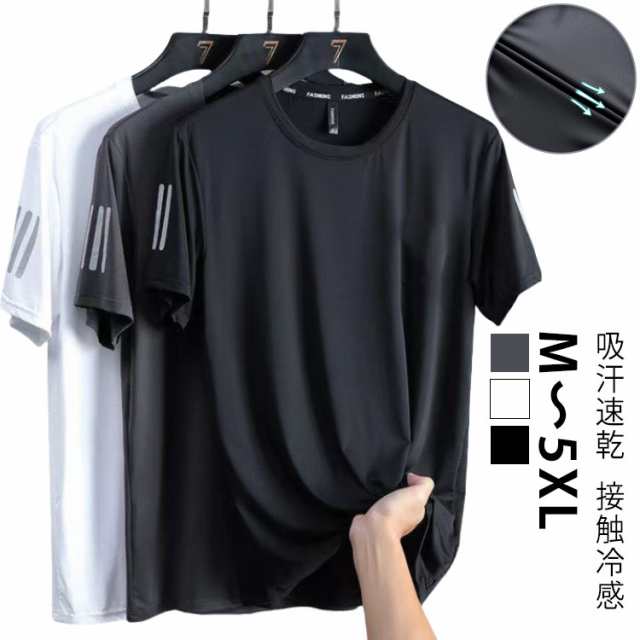2枚セット!接触冷感 Tシャツ 夏 メンズ 吸汗速乾 半袖 クルーネック トップス 薄手 通気性抜群 大きいサイズ スポーツウェア おしゃれ シンプル カジュアル カットソー ティーシャツ クール 夏用 涼しい メッシュ 作業着 ランニング