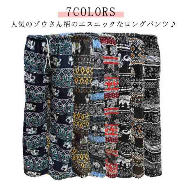 タイパンツ レディース ワイドパンツ 春 夏 エスニック アジアン かわいい ゾウ柄 ぞう 象 部屋着 ルームウェア ロングパンツ 軽い ストレート パンツ ヨガやダンスにも ヴィンテージ カジュアル 薄手 体型カバー イージーパンツ 全7色