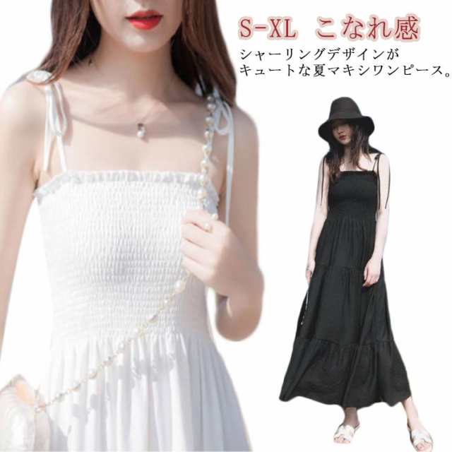 送料無料 シャーリングキャミソールワンピース レディース 肩リボン付き キャミソールワンピース マキシワンピース ロングワンピース フレアワンピース シャーリング ボートネック ふんわり お洒落 キレイめ リゾート 大人 こなれ感 可愛い 夏物