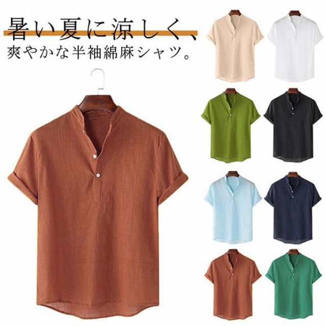 シャツ メンズ 半袖 綿麻シャツ 綿麻 おしゃれ カジュアルシャツ カプリシャツ プルオーバーシャツ 半袖シャツ 無地 パナマシャツ メンズシャツ トップス スタンドカラー 大きいサイズ おしゃれ 薄手 涼しい スキッパーシャツ ゴルフウェア 夏服 春 夏 秋