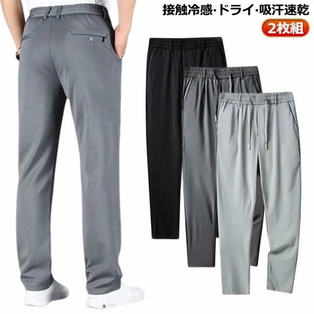 アイスシルクパンツ メンズ 冷感パンツ ゴルフ ワイドパンツ メンズ スポーツパンツ 2枚組 無地 速乾 ロングパンツ 父の日 アイス シルク チノパン ゴルフウエア ビジネス 涼しい 大きサイズ 春 夏