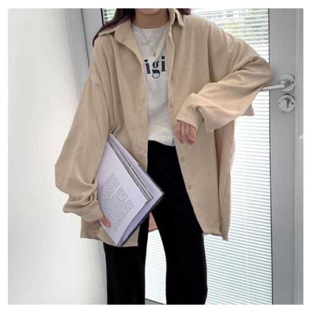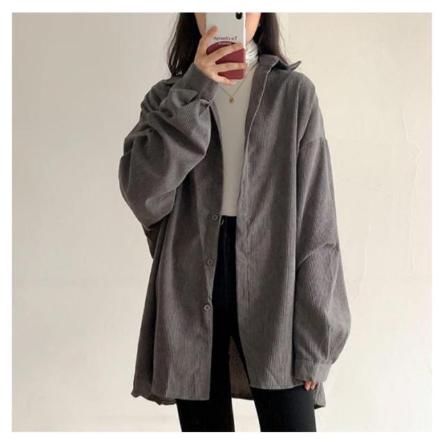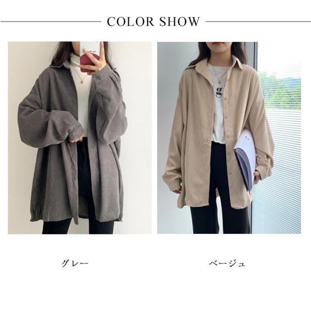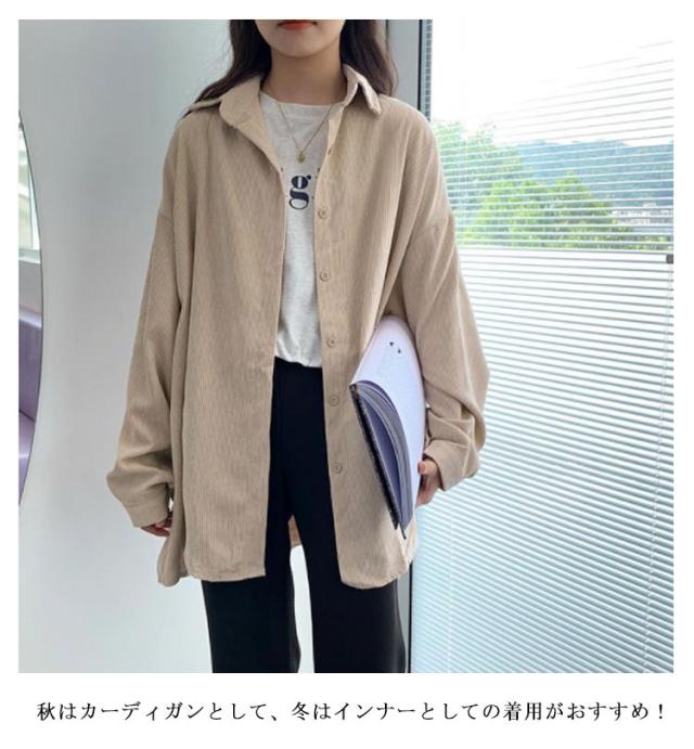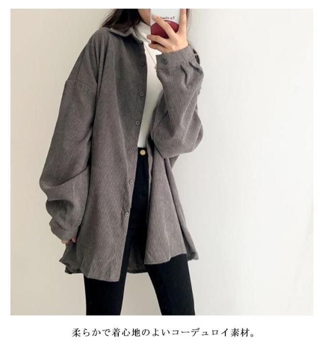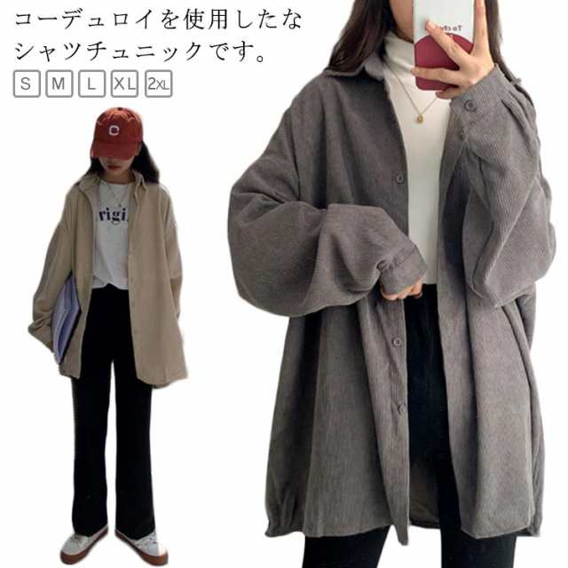 長袖 コーデュロイシャツ 秋 オーバーサイズ 秋物 トップス ゆったり レディース 冬 長袖シャツ コーデュロイシャツ シャツ ロングシャツ チュニック丈 ネルシャツ 起毛 厚手 コーデュロイ 羽織り 秋服 あったか ブラウス 無地 体型カバー 着?せ 大人 カジュアル