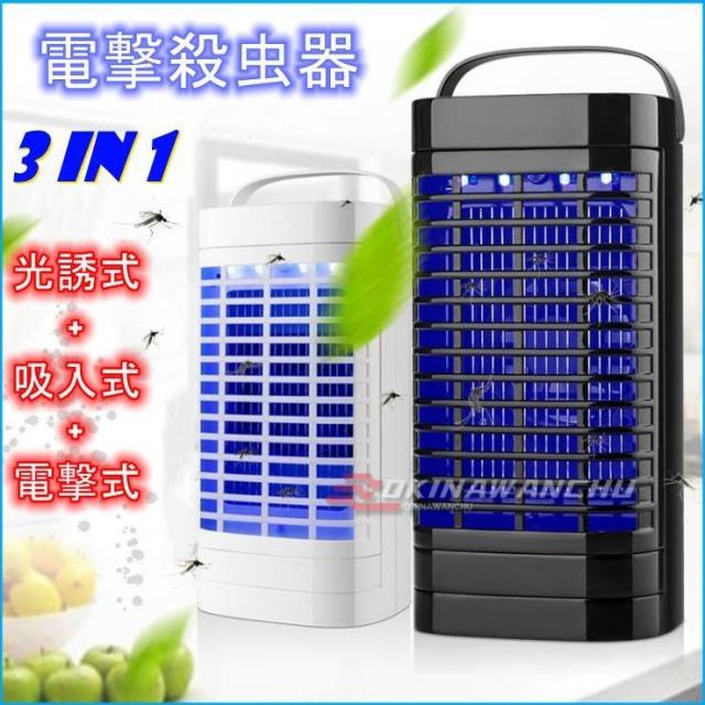 電撃殺虫器 強風吸引扇風機 UV光触媒技術 電撃 3in1 UV光源誘引式 蚊取り器 捕虫器 誘虫灯 蚊駆除 蚊退治 虫除け 殺虫灯 人体無害 薬剤不用